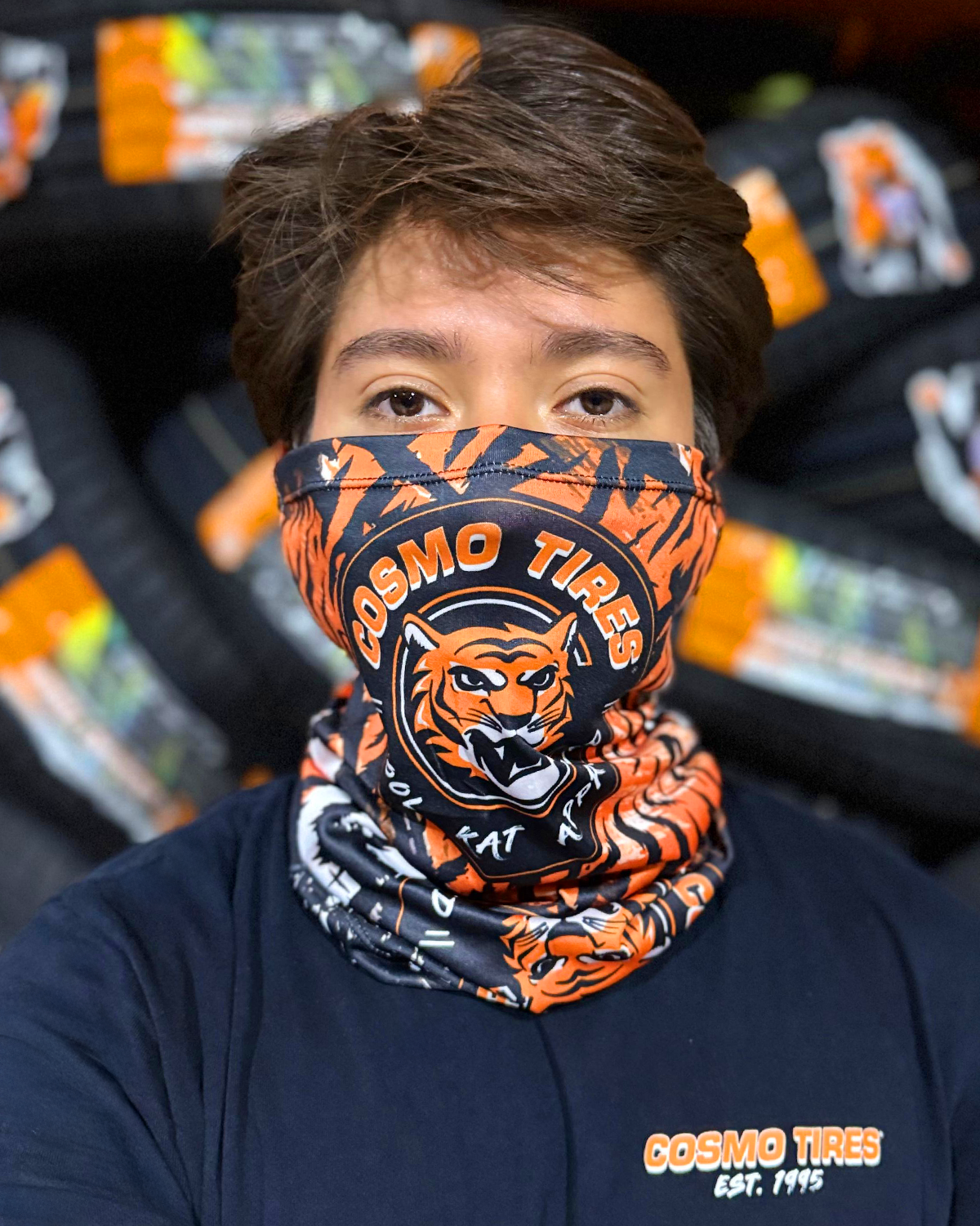 Whether you’re hitting the trail, tearing up the track, or just blocking out dust and wind on the road, this bold multi-use face cover has you protected in Cosmo Tires style.