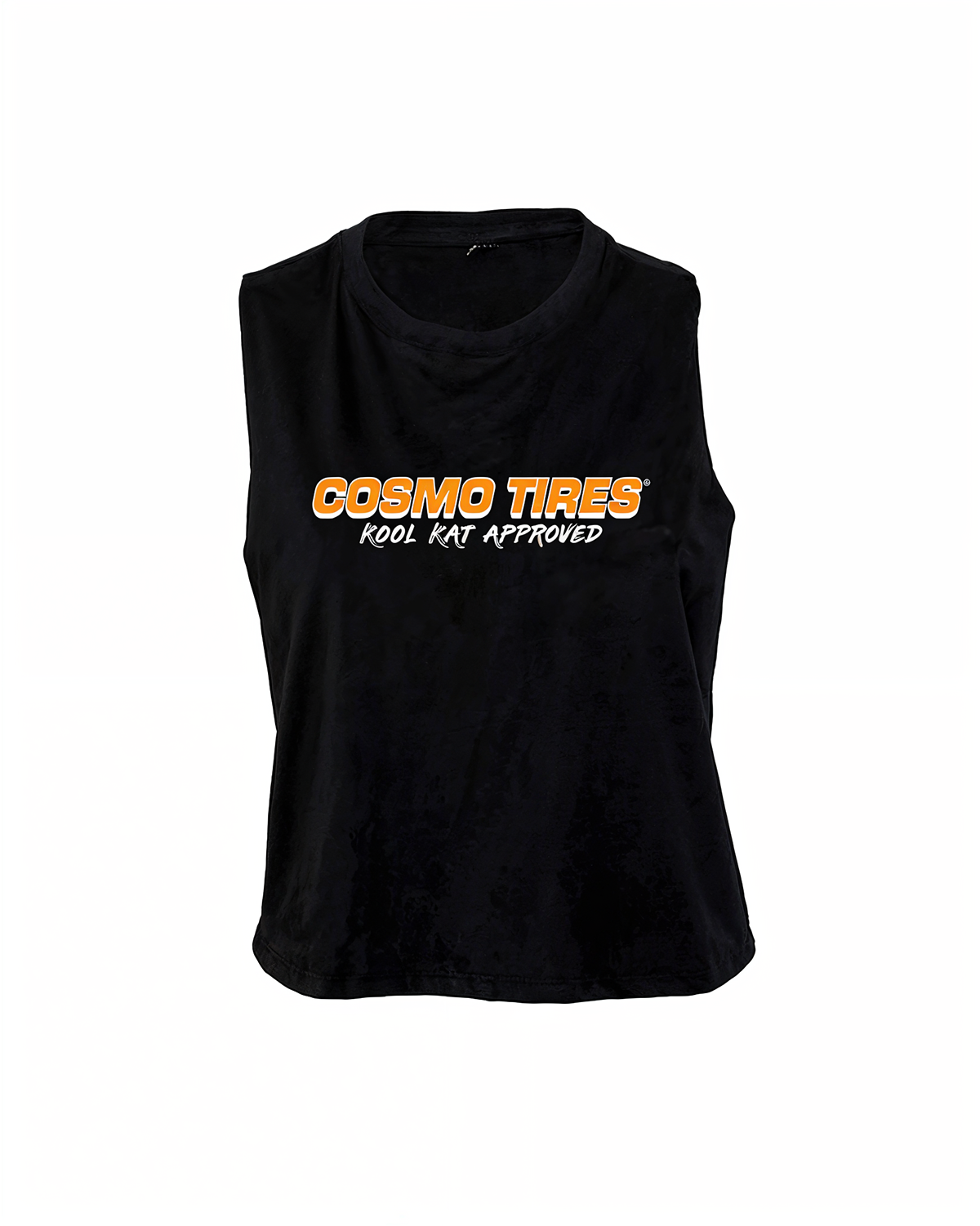 This Cosmo Tires crop top is made for the bold. Lightweight, flattering, and designed for those who ride with confidence and style. Whether you're trackside or street-bound, this top keeps it cool and unapologetically Kool Kat.