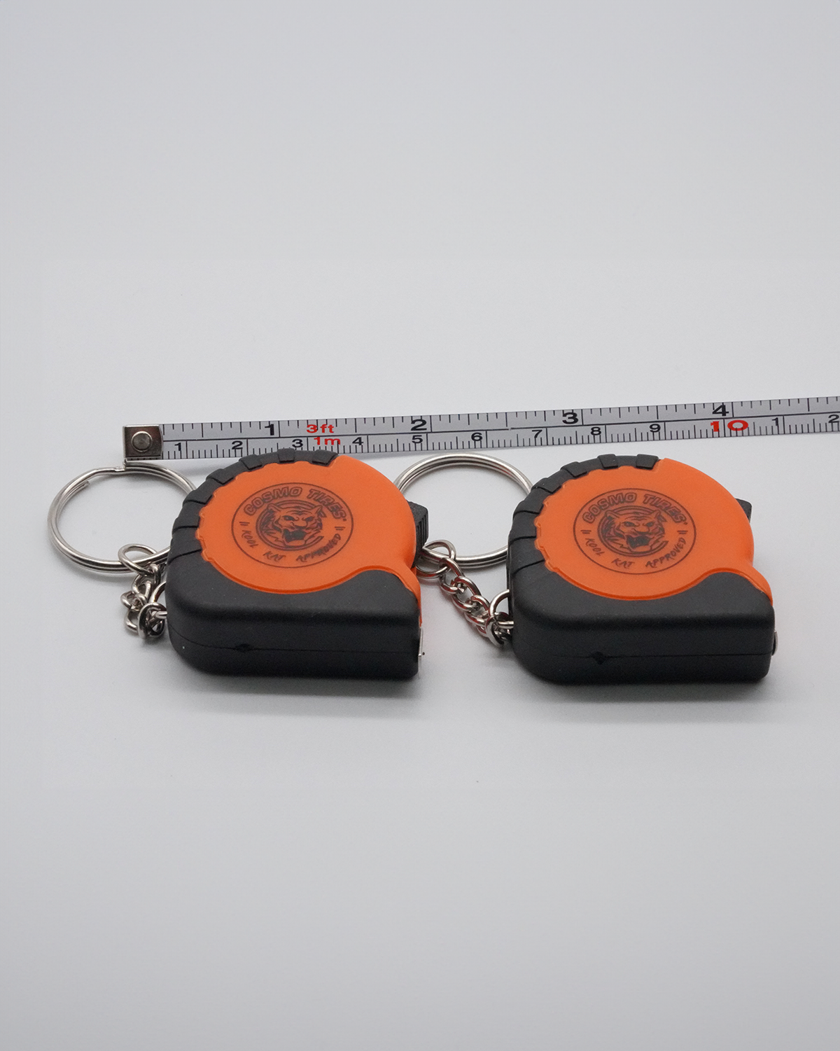 - A compact and functional measuring tape featuring the Cosmo tires logo.