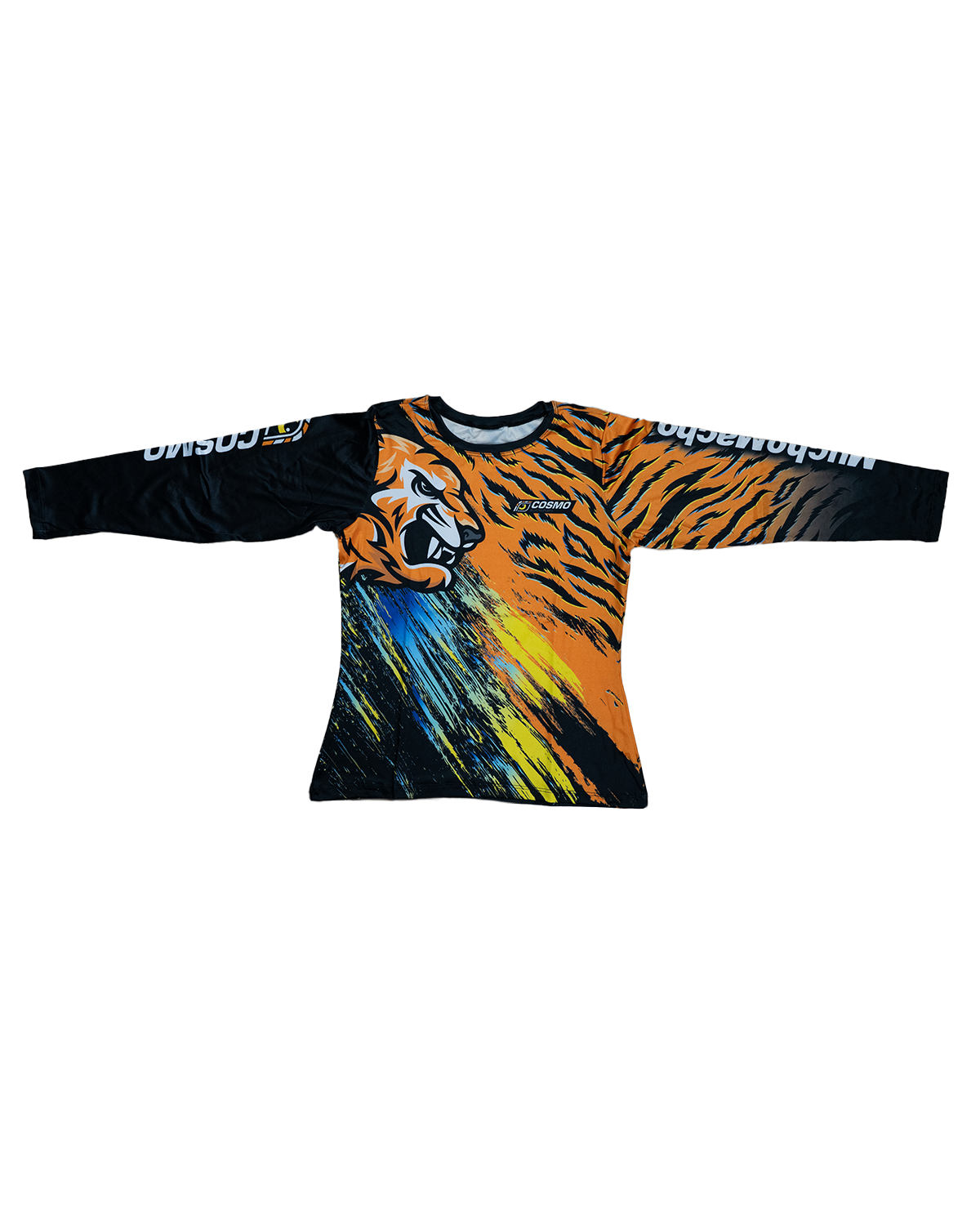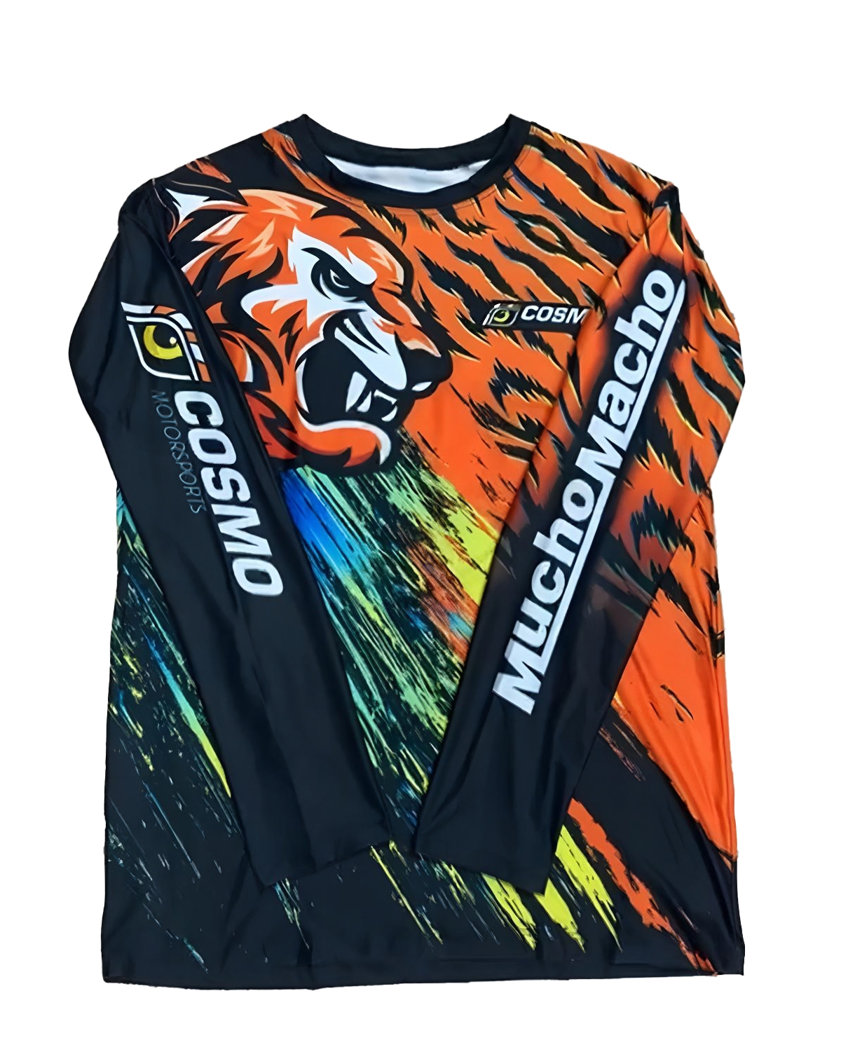 Unleash the beast with the Cosmo Tires MuchoMacho Long Sleeve Tee. With vibrant color splashes and bold branding, this performance shirt is built for adrenaline-packed days on and off the track.