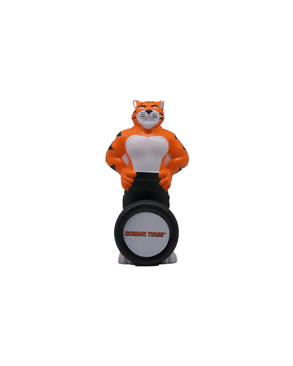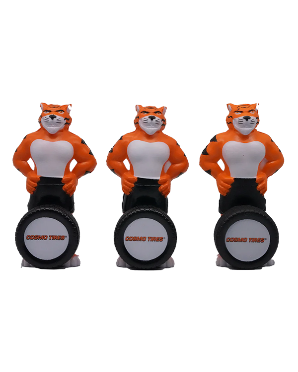 - A fun, stress-relieving squishy toy shaped like the Cosmo tires logo.
